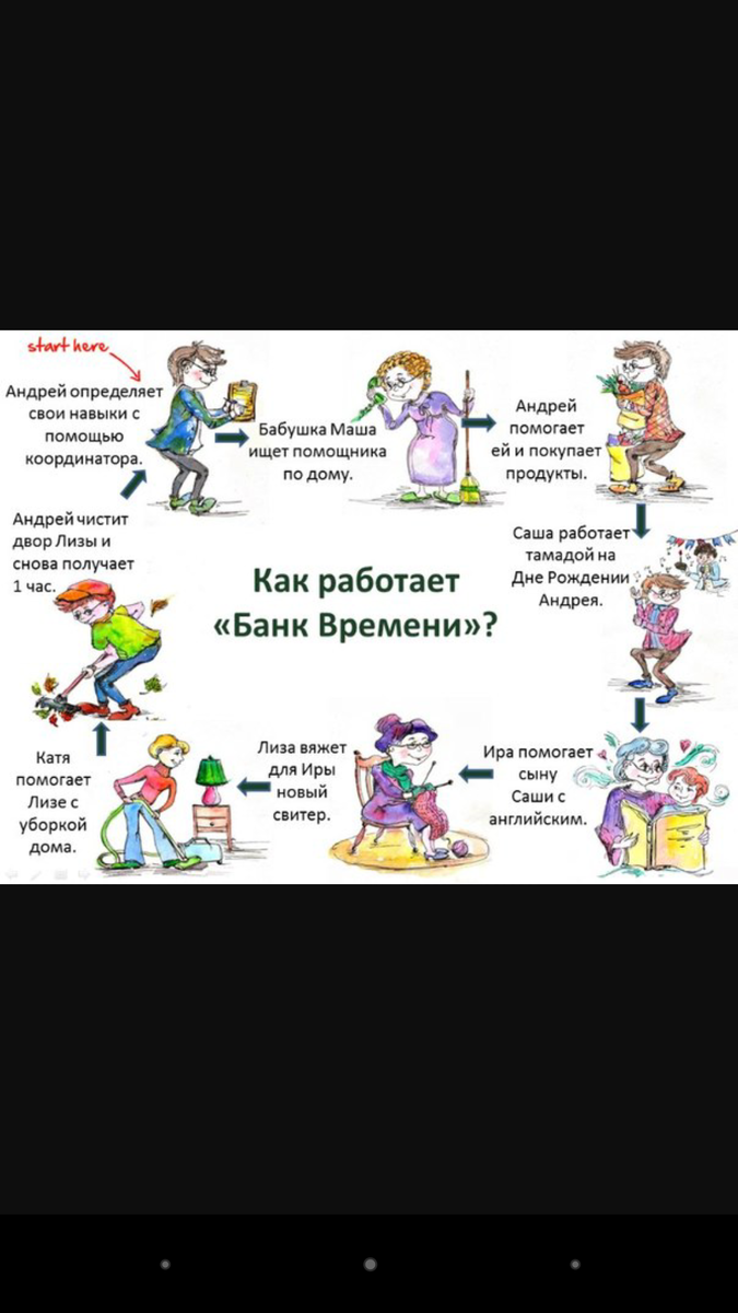 Банк времени -это организация, учитывающая для своих участников, сколько часов своего времени потратил тот или иной участник на оказание различных услуг другим участникам, и сколько времени было потрачено другими участниками на оказание потребленных услуг тем или иным участником.